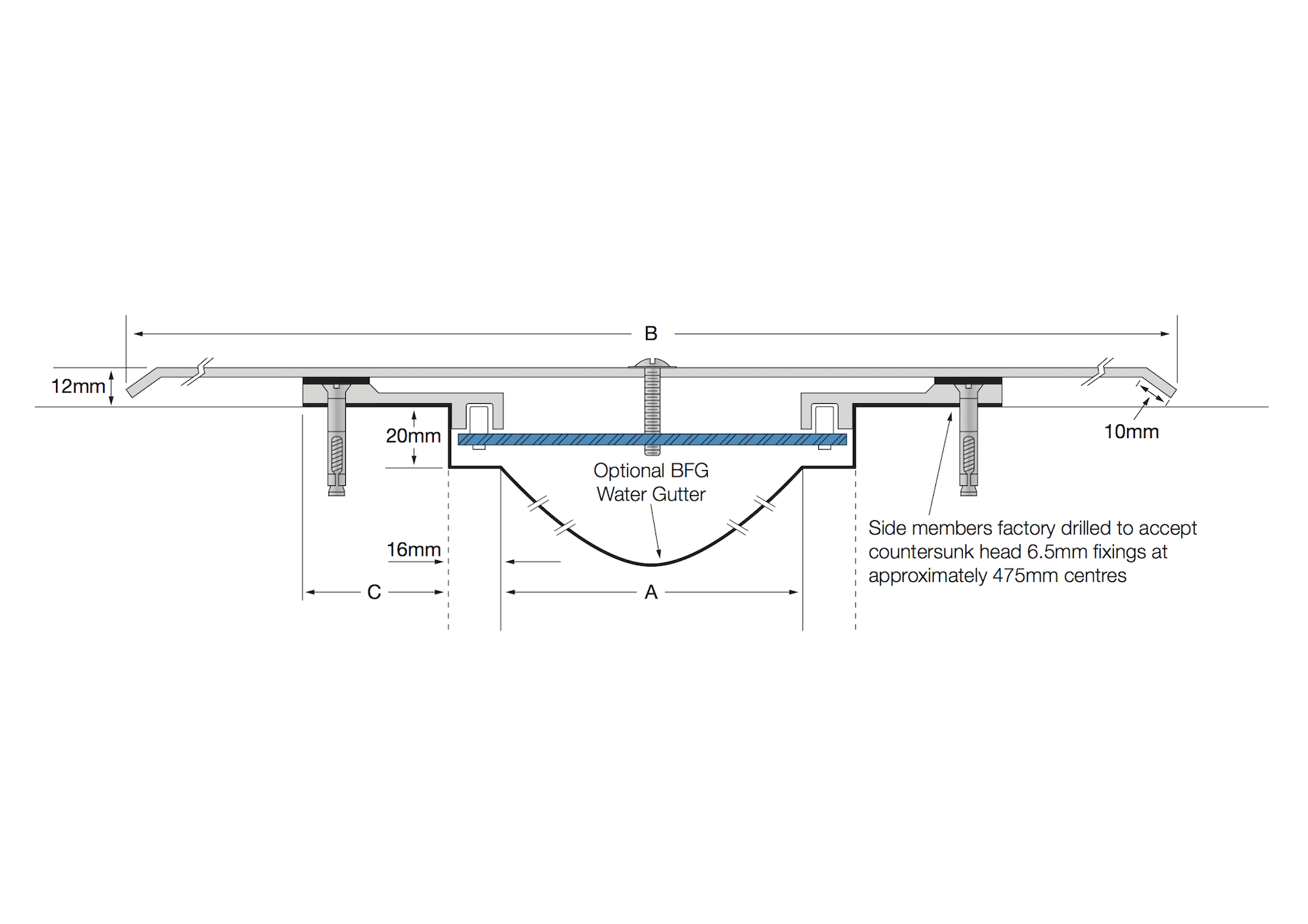 Wider joint widths available on request. All dimensions in millimetres. All mechanical expansion joint fixings by others. | |||||||
