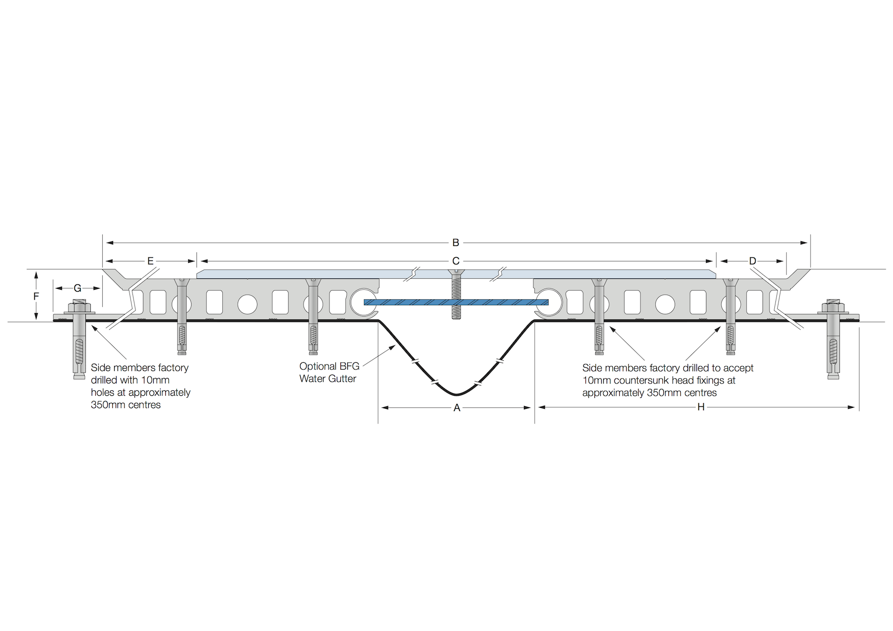 All measurements in millimetres. All mechanical expansion joint fixings by others. | |||||