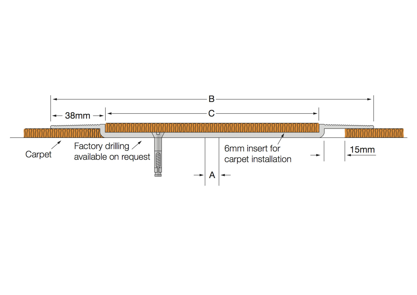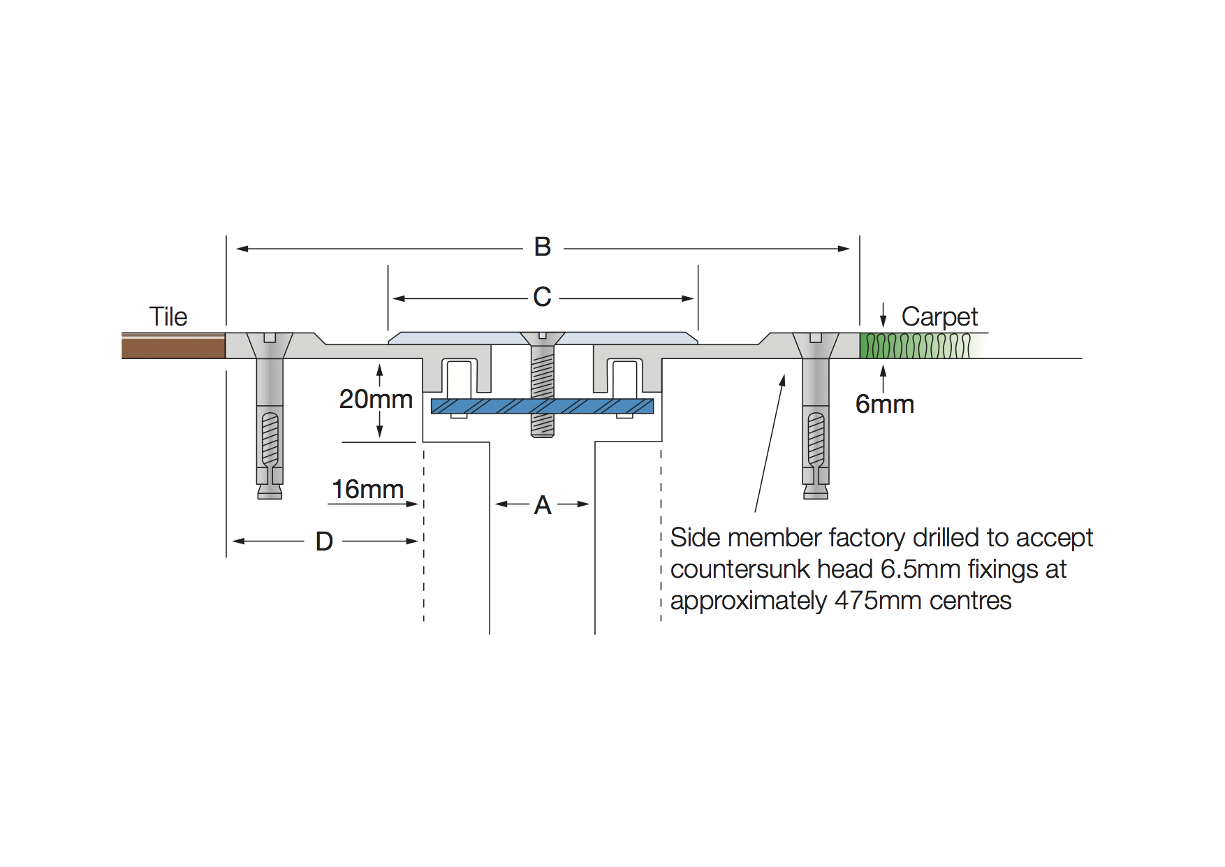Aluminium Code | A | B | C | Movement | Total Available Movement | Overall Depth |