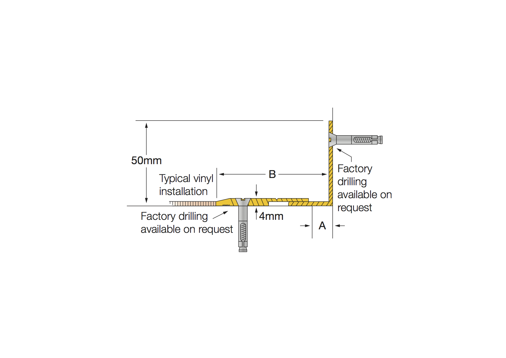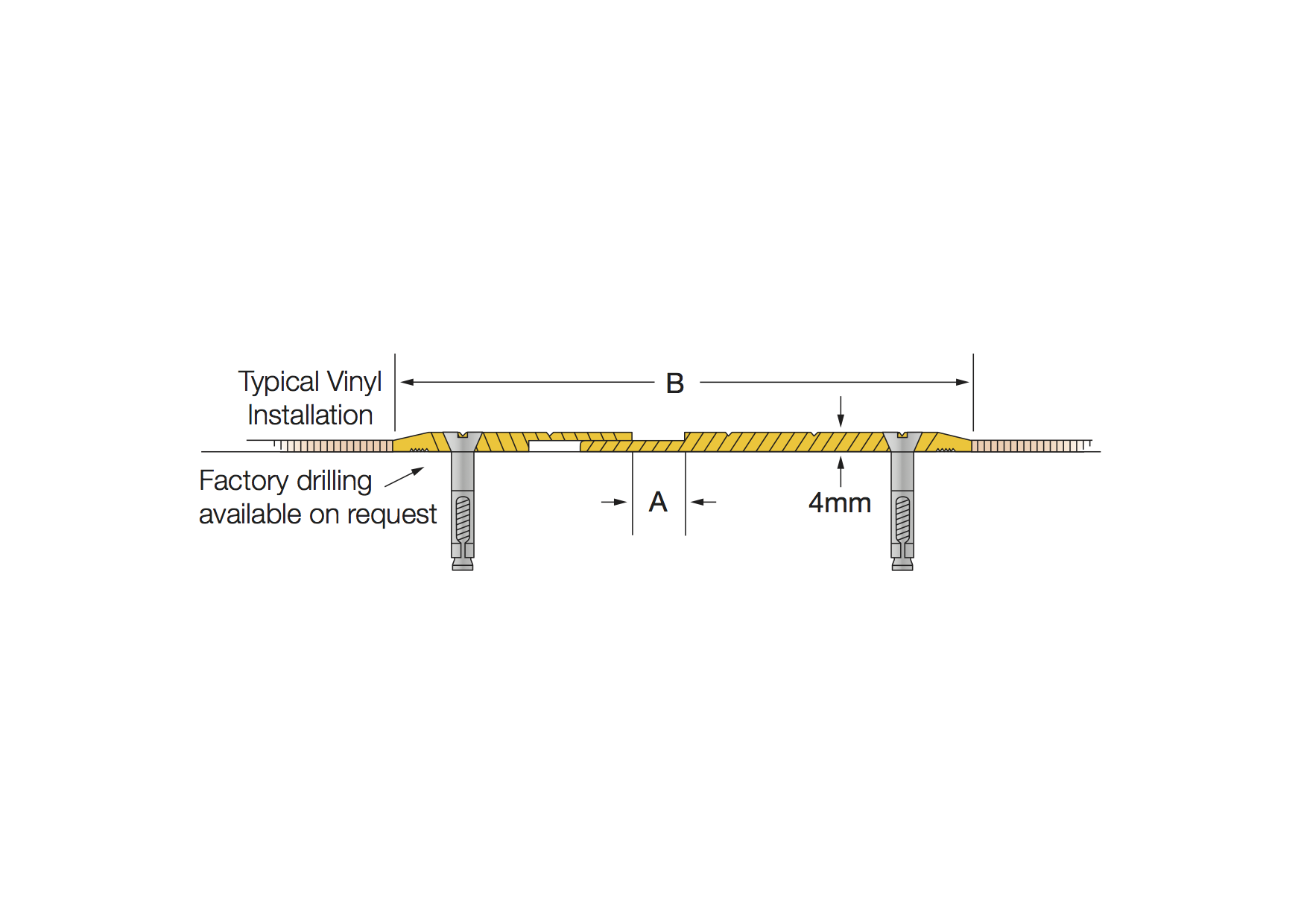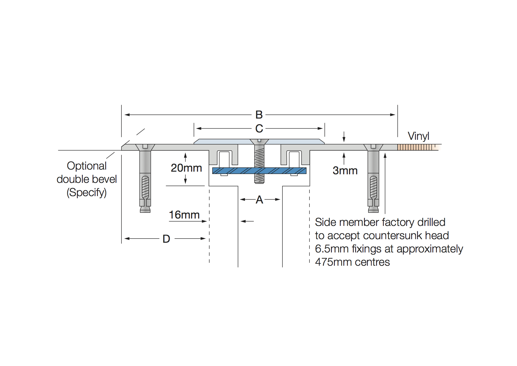 On request, the G-25 can be supplied with 2 x 25mm wide re-surfacable slip resistant inserts installed. The G-25 with the slip resistant inserts applied is the G-25A. The standard slip resistant insert colour is black. Other colours are available on request. The cover plates are rigidly fixed to 1 side of the expansion joint as detailed. Optional factory drilling and fixings are available.