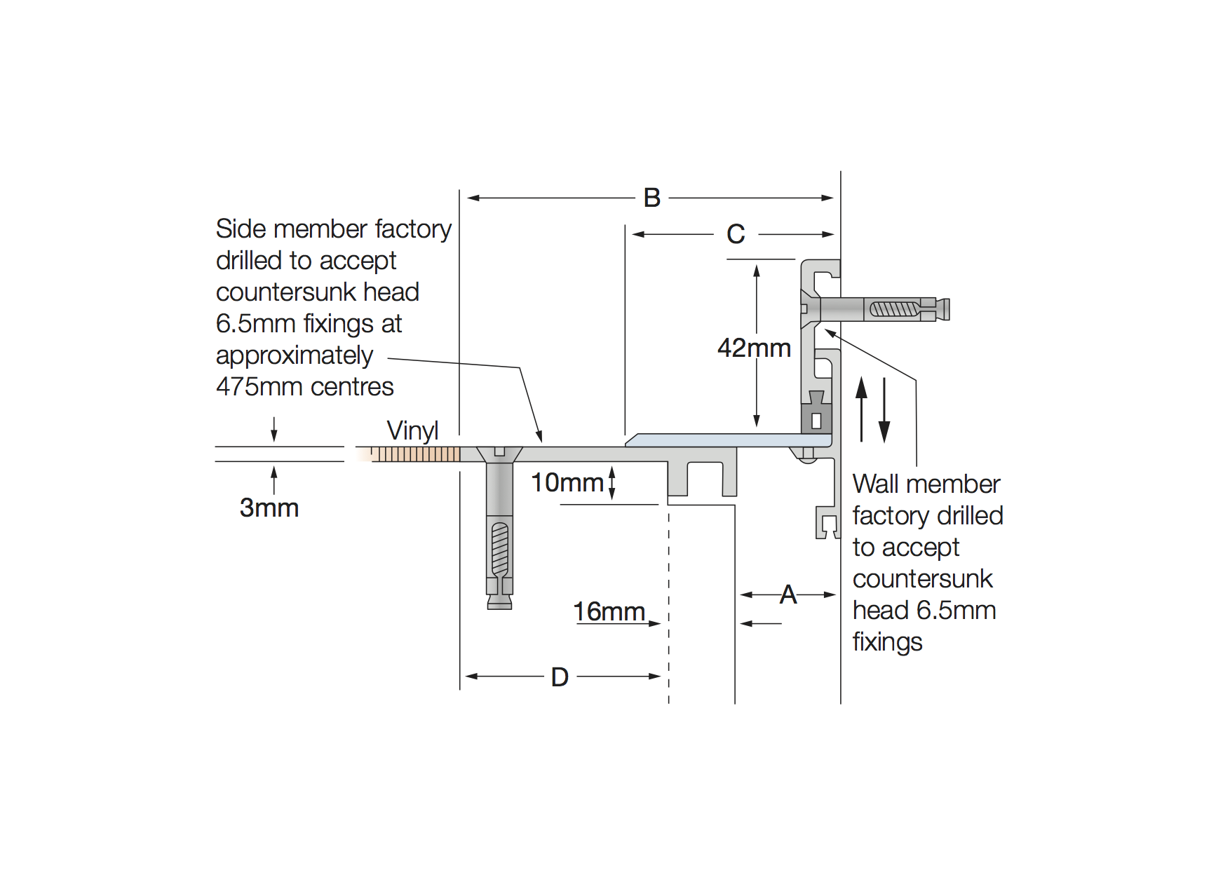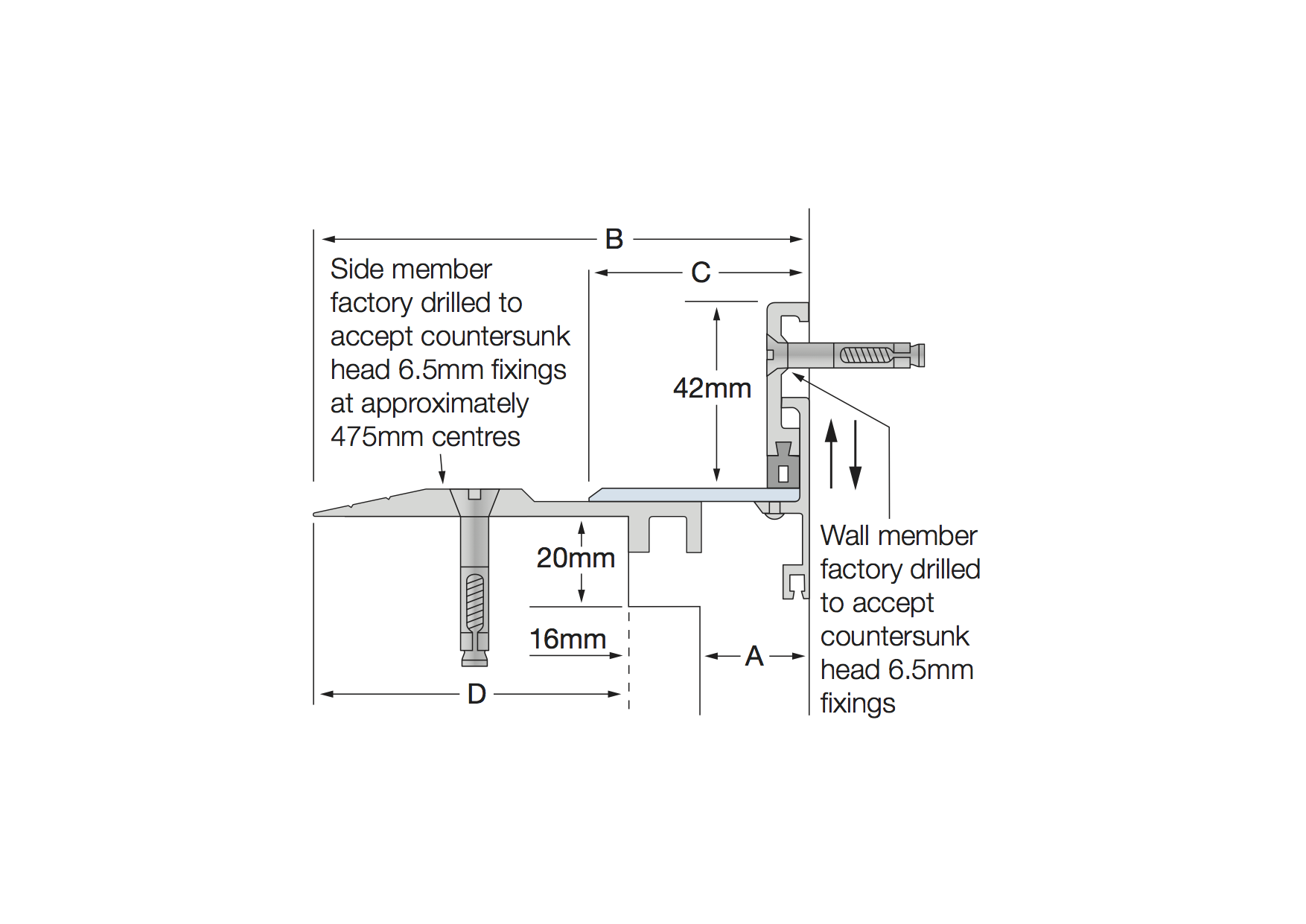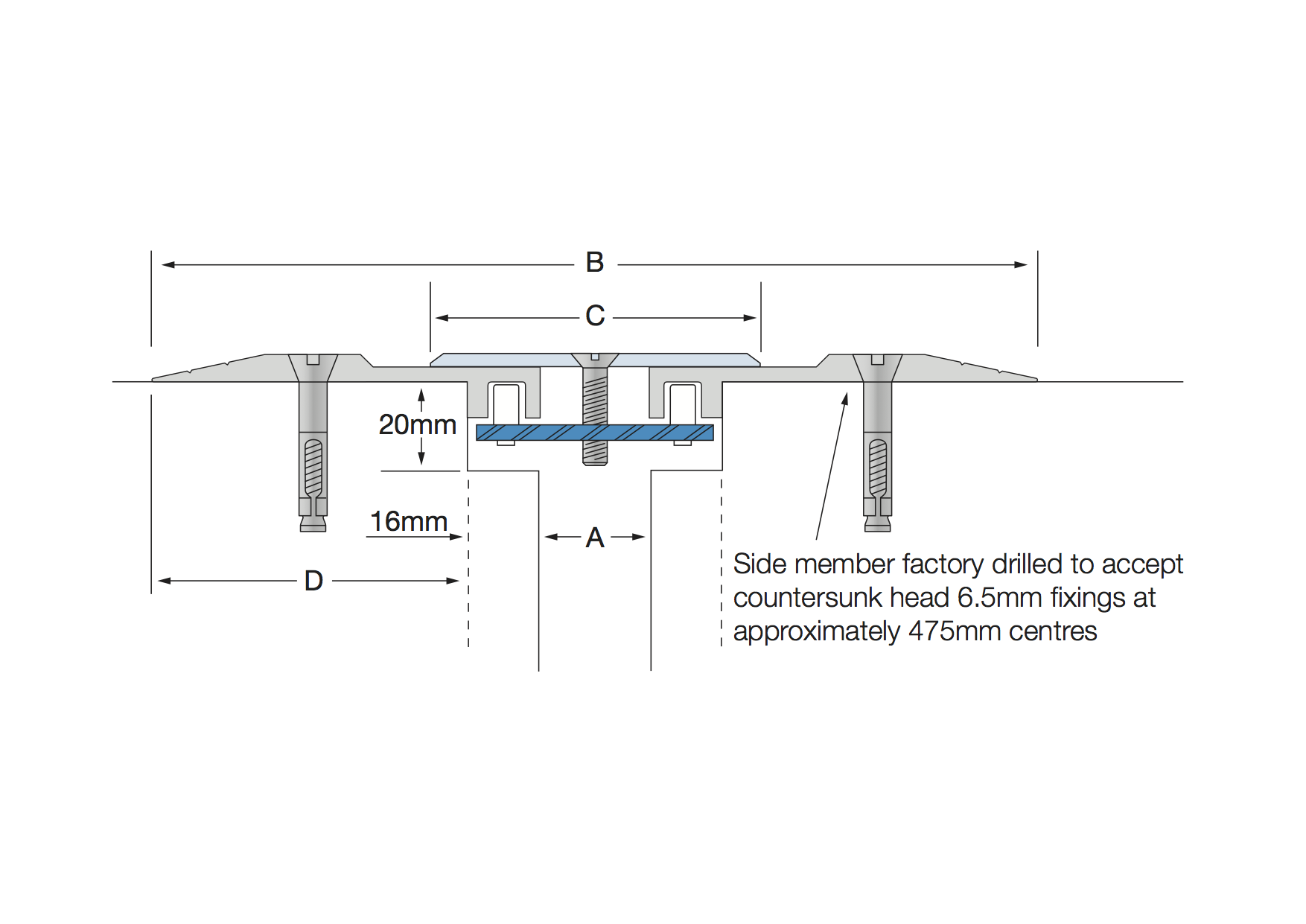 All measurements in millimetres. All mechanical expansion joint fixings by others. | ||||||