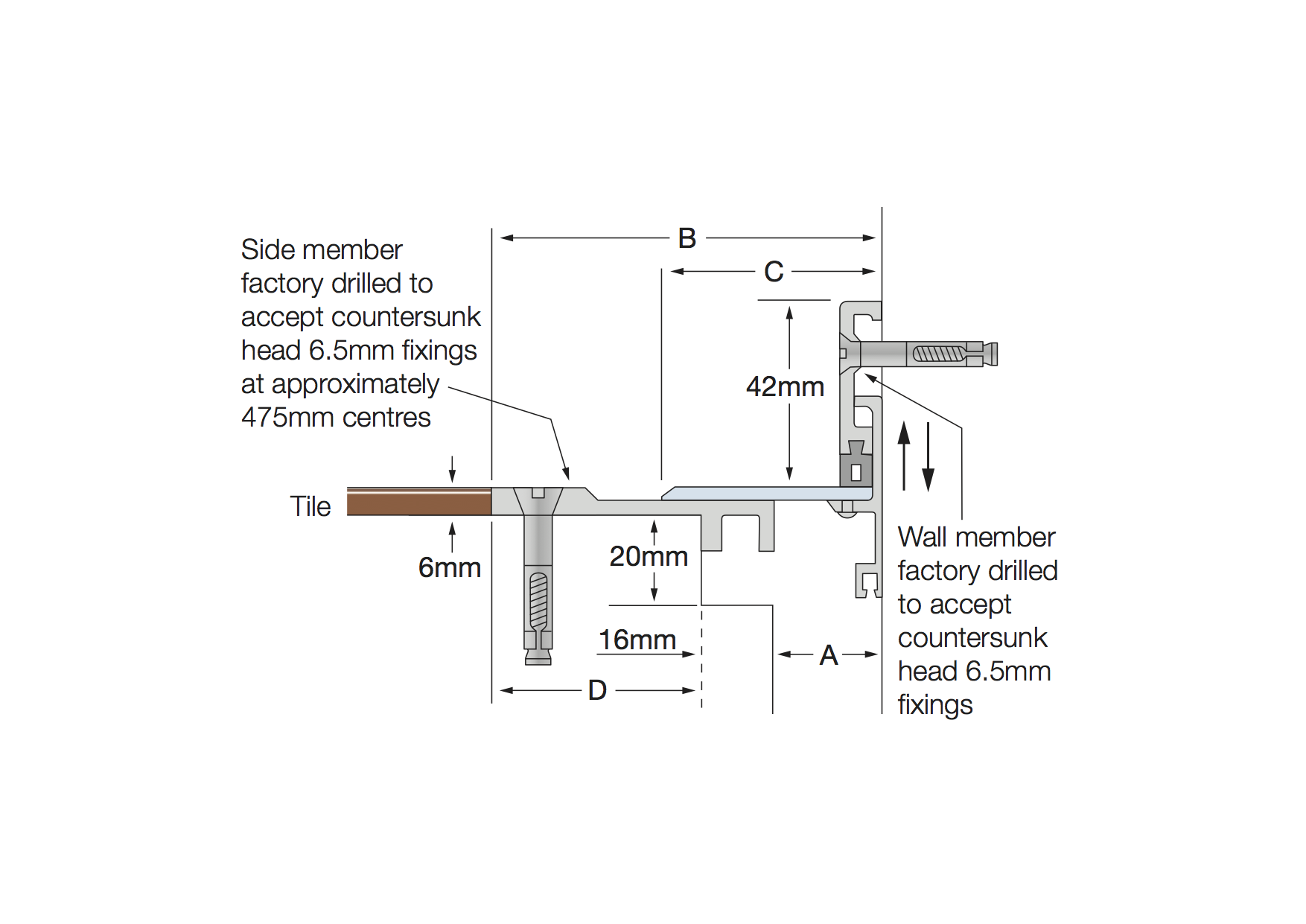 Aluminium Code | A | B | Movement | Total Available Movement | Overall Depth | |